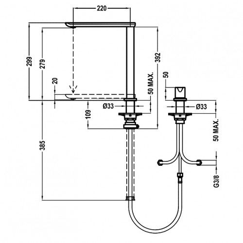 Высота излива: 20 / 50 / 299 мм