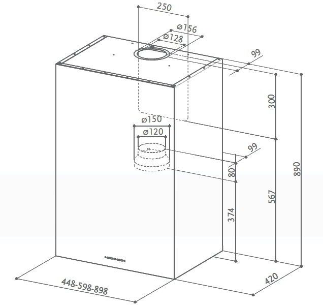 диаметр вытяжного канала: 150/120 mm