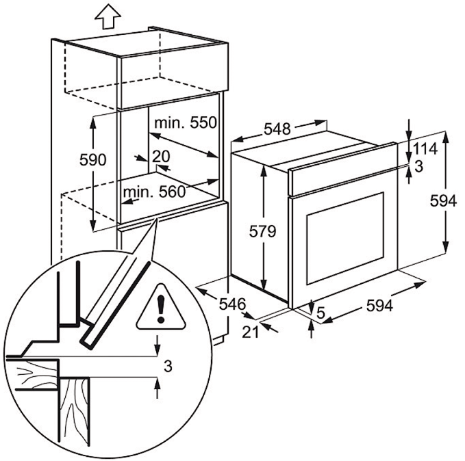 Габариты ниши для встраивания: 60х56х55 см