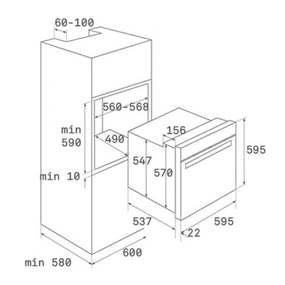 Габариты ниши для встраивания: 59х56-56,8х49 см